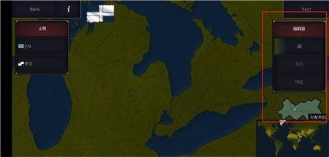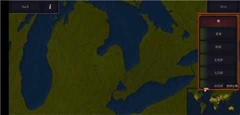 4、进入到创建页面,在右侧可以选择洲,然后点击地图可以选择势力范围