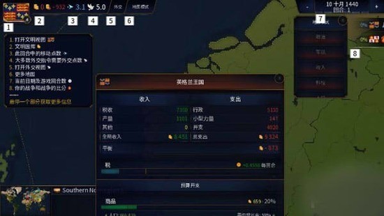 内政管理:税收、人口、科技研发需平衡,避免民生动荡。