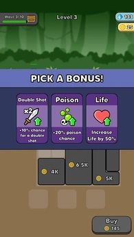 游戏开始时,英雄会自动攻击,击败敌人可获得金币。优先攒金币购买方块,将其与初始武器合并,提升攻击力,快速消灭敌人,为后续关卡积累资源和优势。