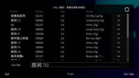 3、既能够加入已有的房间,也可以直接创建新房间与朋友们一同游戏。