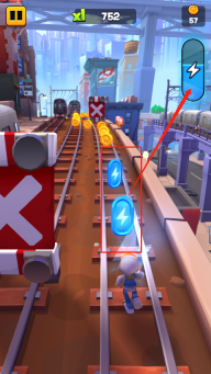 5、相较于传统的地铁跑酷类游戏,这款游戏包含了更为丰富的特色玩法,滑板也无需付费购买,玩家只需在游戏过程中拾取能量块积攒能量,就能免费激活滑板使用。