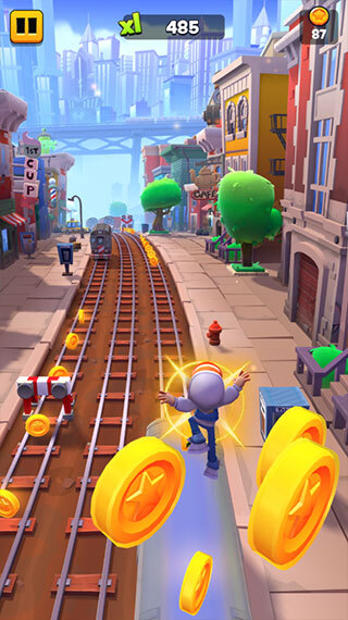 4在游戏过程中,除了要灵活避开各类障碍物外,还得留意铁轨上散落的金币并尽量收集。这些金币不仅能帮助提升游戏分数,后续还可以用来解锁或兑换其他不同的角色。
