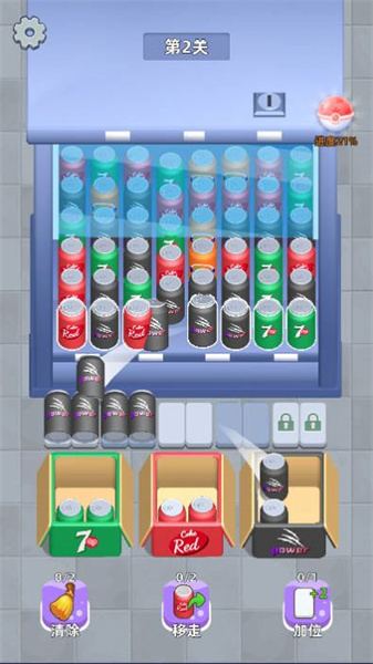 3、混乱的容器中有各种物品,将相同物品归纳在一起消除,随着物品增加,需合理摆放并使用道具来过关;