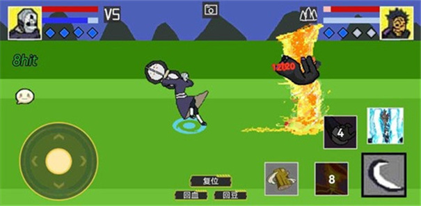 3、经典复古的像素风图形打造的各种帅气忍者,可以操控这些忍者来同其它动漫之中的角色进行格斗。