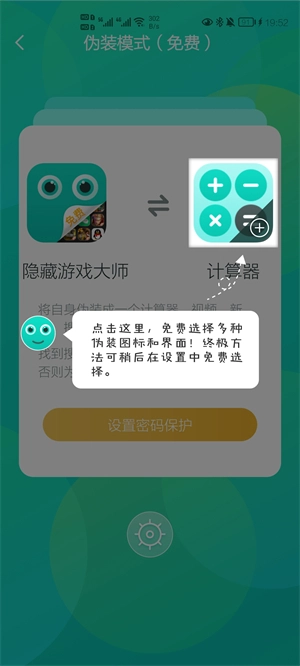 2、点击伪装并设置密码,即可隐藏游戏,实现完美隐藏。