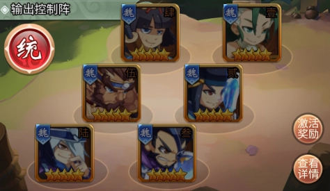 3、打造一支符合心中所想的三国队伍,借助升级、进阶以及强化装备等途径,增强武将的实力。