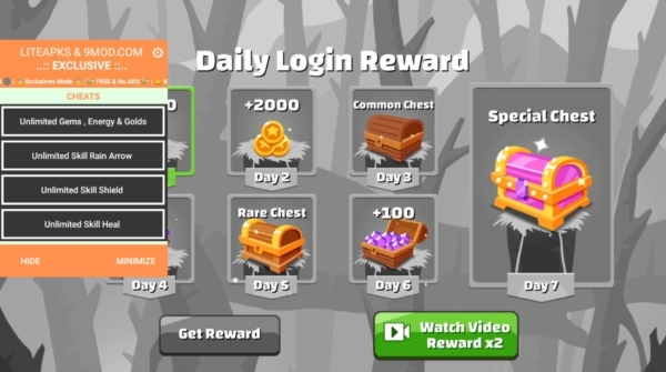 四种增强道具可以为你提供帮助:治疗、盾牌、箭雨和传送