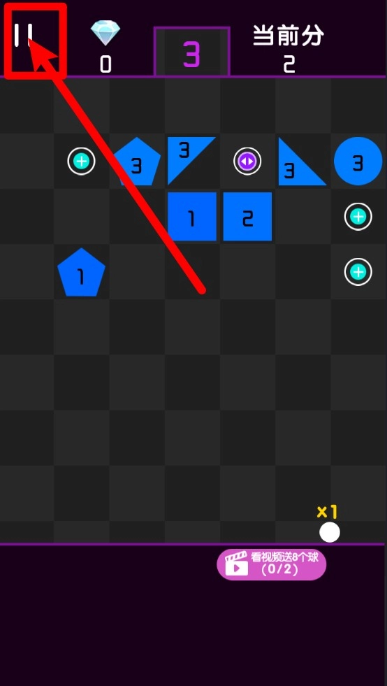1.界面左上角清晰展示了暂停按钮、宝石数量和当前分数,可以随时暂停调整策略以便获得最佳体验。