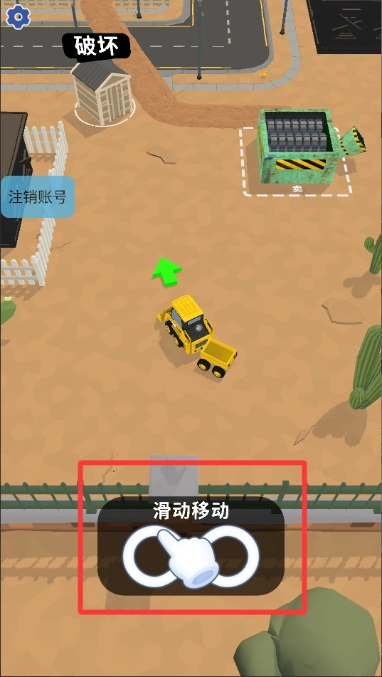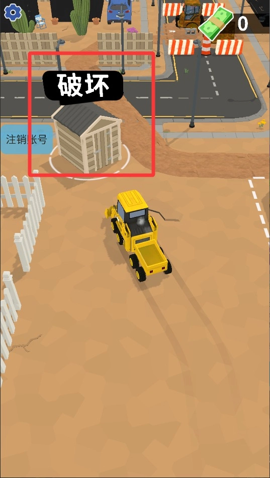 2、左手滑动屏幕控制工程车移动,注意避开路上的障碍物,找准角度对准要拆的建筑。