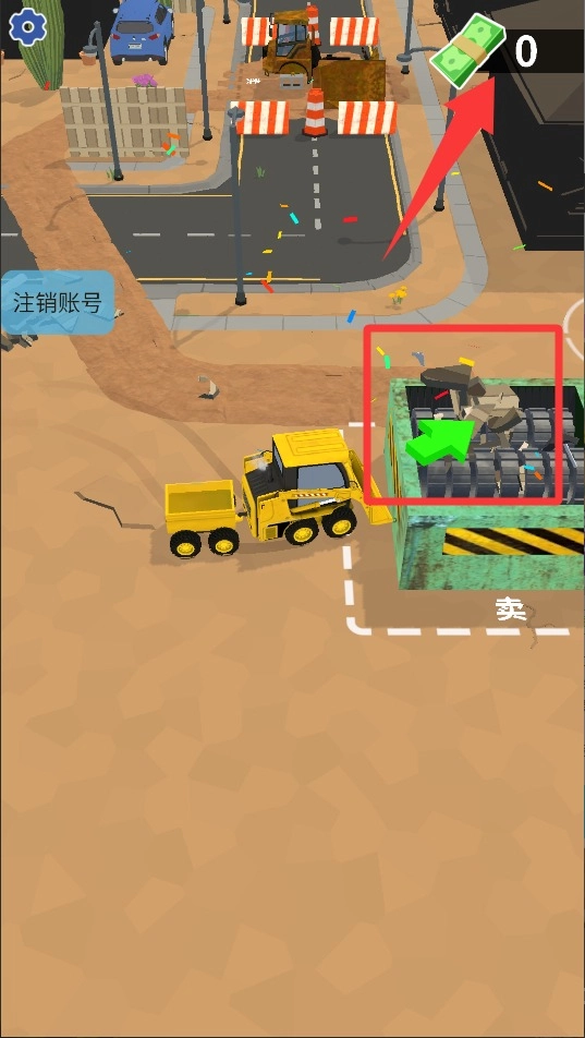 4、把拆出来的废料拖到回收站卖掉换钱,攒够金币能买更高级的工程车,拆楼速度更快。