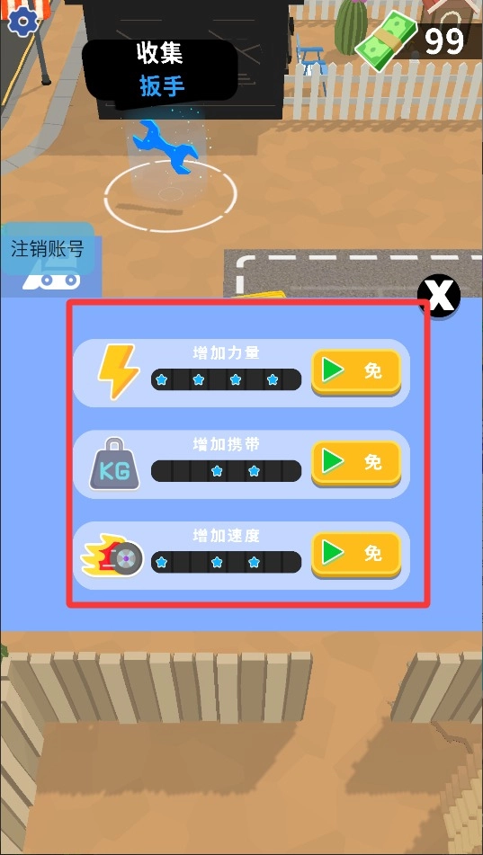 1. 游戏开始时,首先点击属性进行升级,推荐优先强化冲击力与耐久度,如此一来,拆除房屋能更具效率,车辆也不易受损。