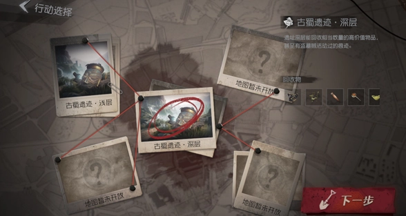 3、这里以摸金撤离为例,选择遗迹浅层或者深层;