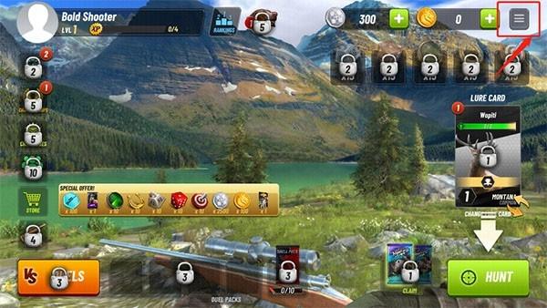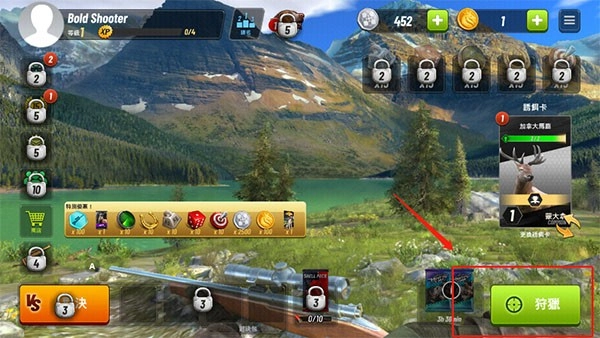1. 安装游戏后,会直接进入游戏主页面,在此页面可直接点击“狩猎”开启游戏。