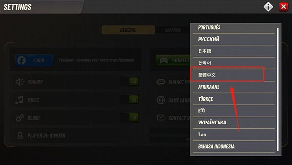2、然后点击中间的general,然后再点击game language