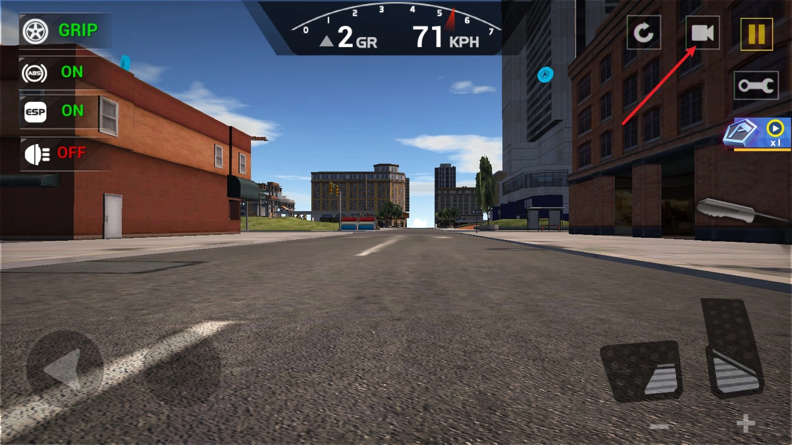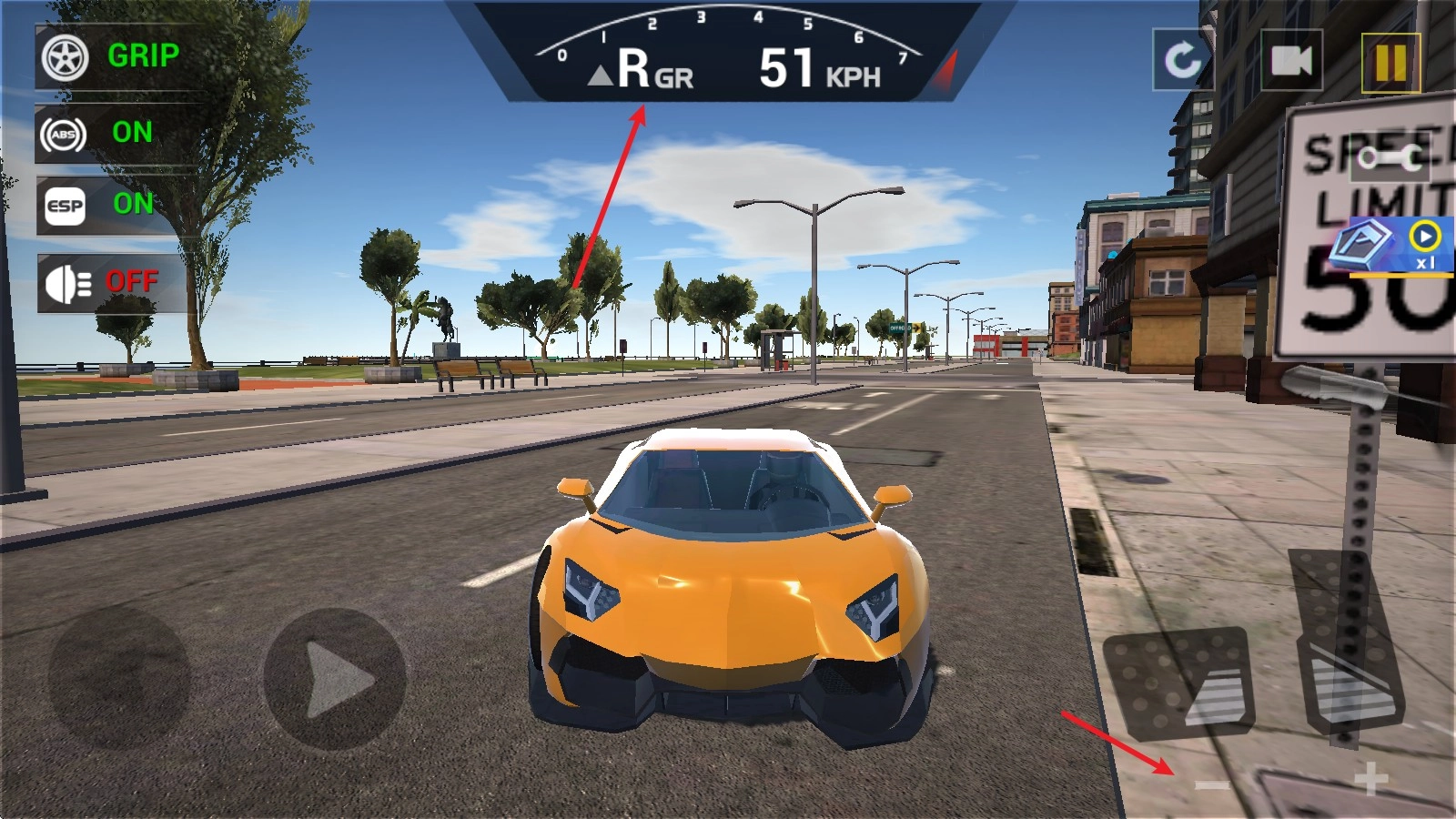 4、点击右侧踏板下的加减号,可以升降档位,降到R档后可以后退。