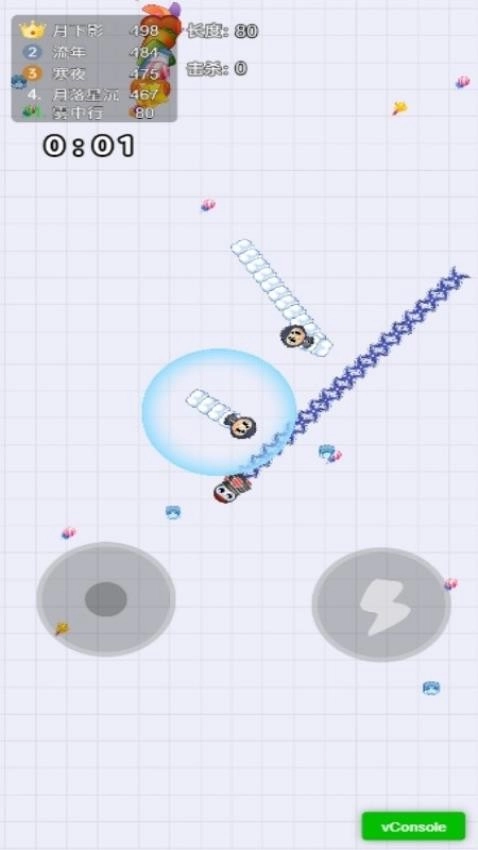 3.控制摇杆走位你的小蛇,不断吃掉小光点,成为世界最长蛇蛇!