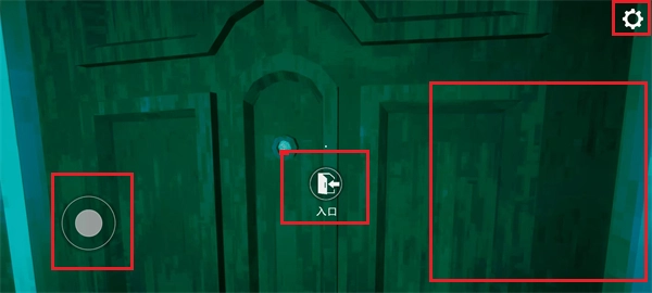 1、开局,左边是移动摇杆,右边滑动屏幕转动视角,右上角是设置按钮,随后点击中间“入口”,打开大门。