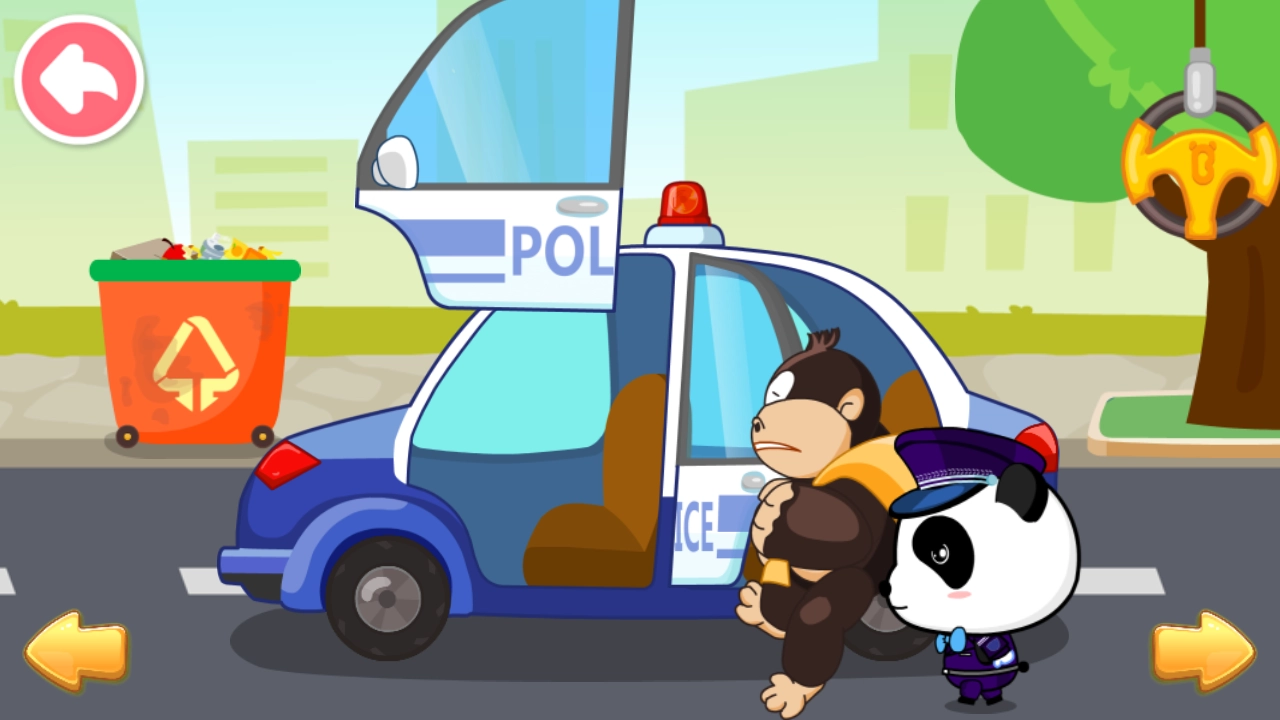 3、这里我们以警车为例,树后的小猴子鬼鬼祟祟的,点击小猴子。
