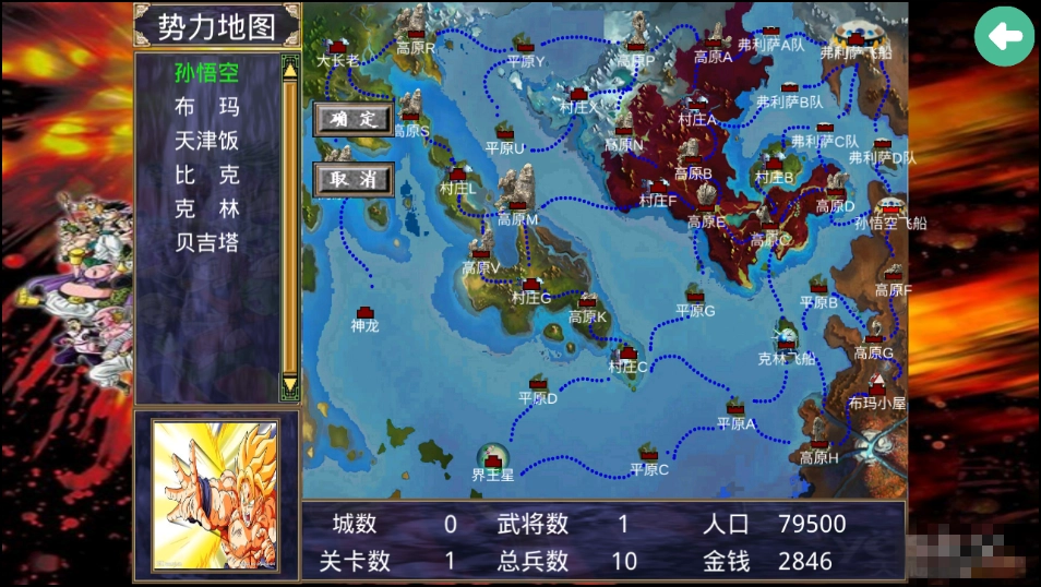 三国群英传2七龙珠能够为玩家提供孙悟空、贝吉塔、比克、孙悟饭等一系列可选主公,可以根据自己的想法进行招兵买马、训练将士、定制策略、攻城略地,这样一来就能够称霸天下。此外,该游戏版本最大的优势就是了金手指功能,玩家可以一键实现的效果,让游戏难度大幅度降低。