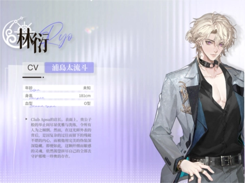 ClubApsu的店长。表面上,贵公子般的举止间尽显优雅与洗练,令所有人为之倾倒。然而,在这光鲜外表的背后,是因复杂的过往而留下的残破不堪的内心,而被他用完美的伪装深深隐藏。即便如此,这颗纤细而敏感的灵魂,依然渴望拼尽自己的全部去守护那唯一珍贵的存在。
