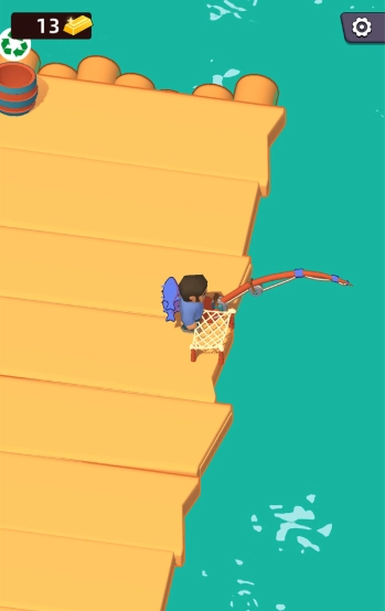 2、使用船上给的材料做出渔具,渔具会自动收获,只需人物拿取即可。