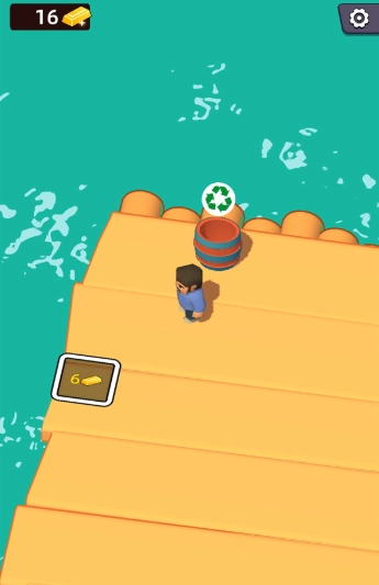 3、玩家靠近有着回收标志的桶会回收玩家身上的道具并给予相应的资源。