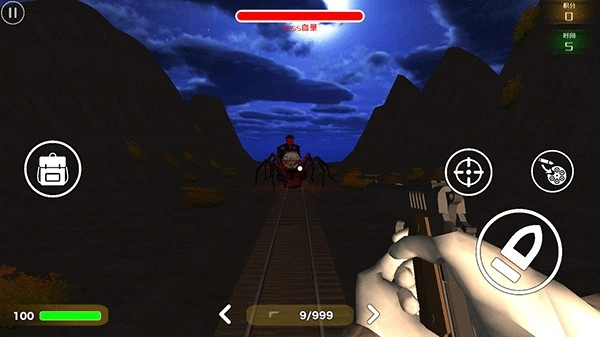 5、使用武器对准怪物火车,展开射击,击中后Boss血量就会减少;