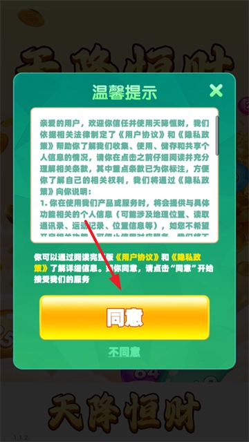 2、点击同意温馨提示