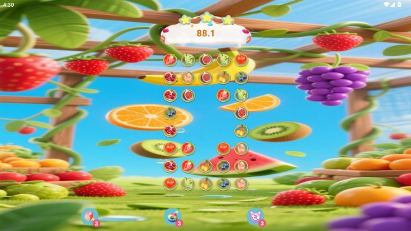 这款游戏有着丰富多样的关卡设计,难度从简单逐步过渡到富有挑战性,每一关都设定了不同的目标与要求。随着关卡不断推进,你会碰到各式各样的特殊水果与障碍物,像冰冻水果、锁链水果等等,这使得游戏增添了更多策略性。而且,游戏画面清新可爱,水果的造型生动活泼,再搭配上轻松欢快的背景音乐,玩起来让人心情格外舒畅。