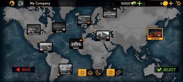 1、进入游戏后,玩家能够挑选不同的地图进行游玩,而且每个城市都有各式各样的巴士可供选择。