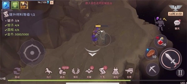 4、在游戏前期,建议优先顺着主线完成任务,搭建起自己的营地。当成功解锁篝火以及制作食物的设施后,便能够外出收集资源。在此过程中,还能通过击杀怪物提升自身等级,等级提升后可获取更优质的装备。接下来就可以前往矿区挖矿,进入矿区时,最好携带一把弓箭,如此便能远程消耗敌人。