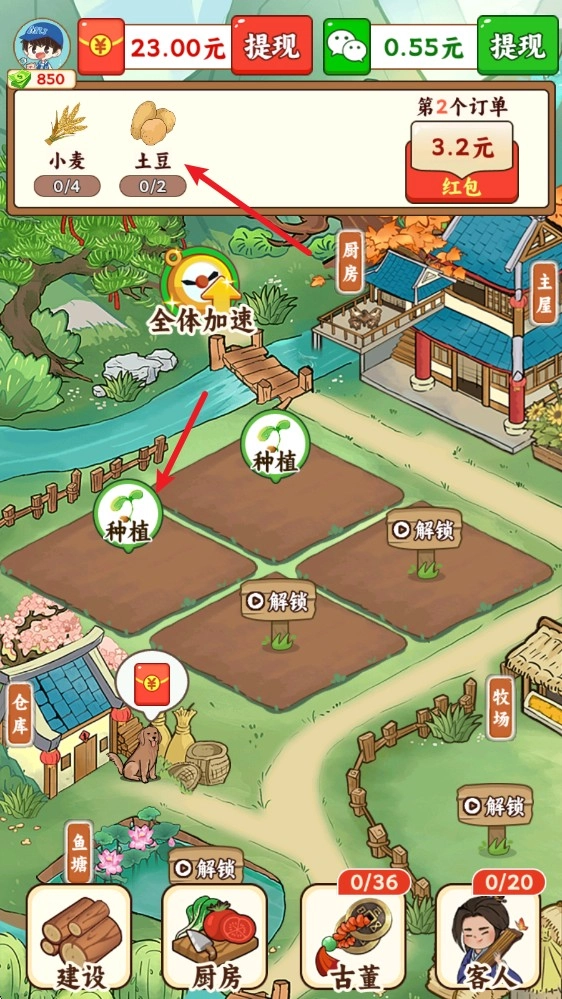 1在游戏里,只要点击位于最上方的订单,就能查看种植目标,接着点击下方的空地,便可开启种植。