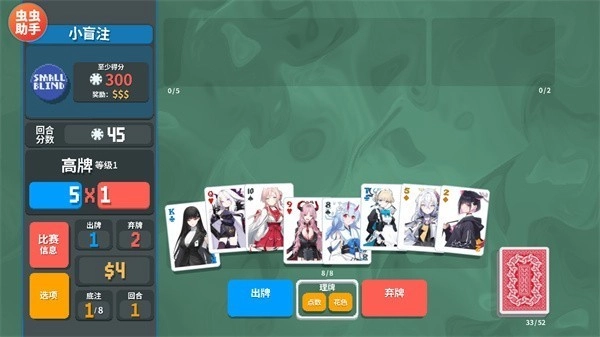 2、选择一个或者多个卡牌,可以直接出牌,然后就能获得分数。