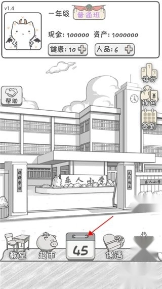 1. 首先,在游戏界面中找到日历图标并点击,持续点击该图标,直到页面跳转到第45周,这时教室功能模块就会解锁。