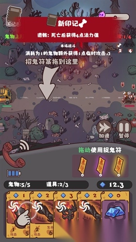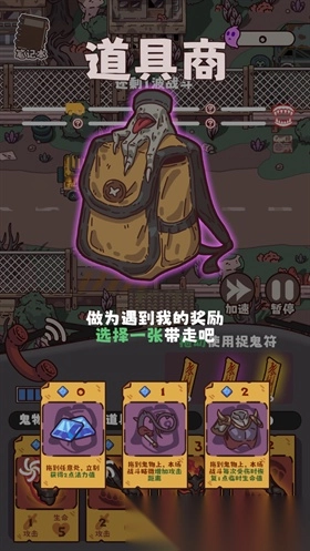 2. 在商店中购买鬼物,每种都有独特的战斗方式和能力。