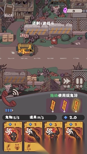 1. 除了以鬼物作为主要角色卡外,还有各类道具卡与符咒卡等为对战提供助力,从而更顺畅地完成闯关。