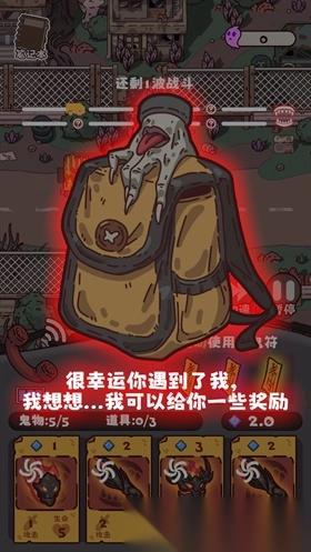1这是一款以鬼怪为主题的卡牌策略游戏,其中有着形形色色可爱的怪物角色,游戏场景更是极具吸引力,让人沉浸其中。