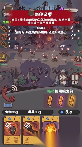 所有的敌方鬼物(包括boss),都可以使用符咒卡进行降服。