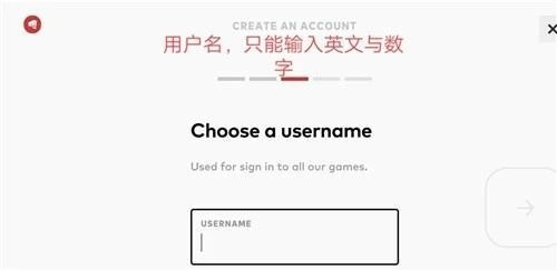 5. 接下来设置你的昵称,此昵称在后续登录游戏时会使用到,务必牢记(需为英文与数字组合,长度8位)。请注意区分注册邮箱和昵称。若遇到用户名已被占用的情况,更换一个用户名即可。