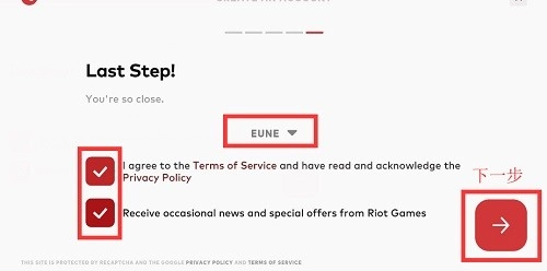 8.选择好区服后,勾选相关协议(可仅勾选第一项),点击右下角进入下一步。