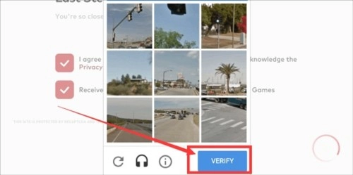 10.A. 勾选正确图片后,该图片会变白并立刻消失,紧接着新图片出现,随后继续按要求勾选,直至9张图片中都没有符合条件的图片。此时,向下滑动页面,点击右下方的“verify”按钮。