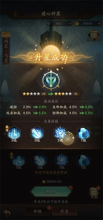 ③【剑灵飞星】道心从3星1阶提升至3星5阶