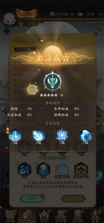 消耗【剑灵飞星】30道心碎片激活新剑灵主角道心