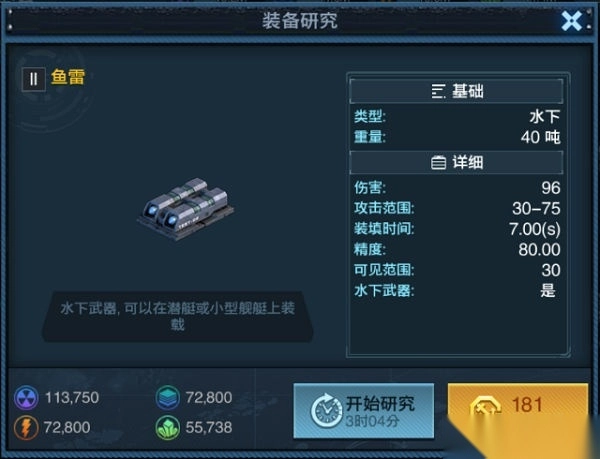 水下武器特点,射程远、射速慢、自动跟踪目标、仅特殊船体可配备。作为唯一可攻击水下潜艇的武器,其同制导武器一样具有相应的特征,但需要注意水下武器无法攻击陆地上的建筑,因此基地战基本用不到。