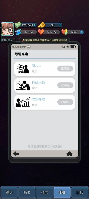 可以跟着目标去做,完成有奖励,想要好职业就去做阶层任务(我升级太快,比如参加30次职业考试,就没完成,有强迫症的就一一对照完成吧)