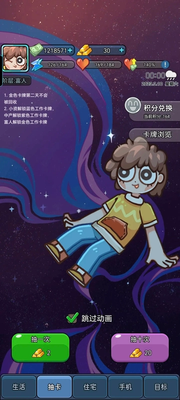 积分兑换所需要的卡牌,比如女友约你做瑜伽,你没有瑜伽牌就来换,换约会事件卡牌好用,每周刷新一次