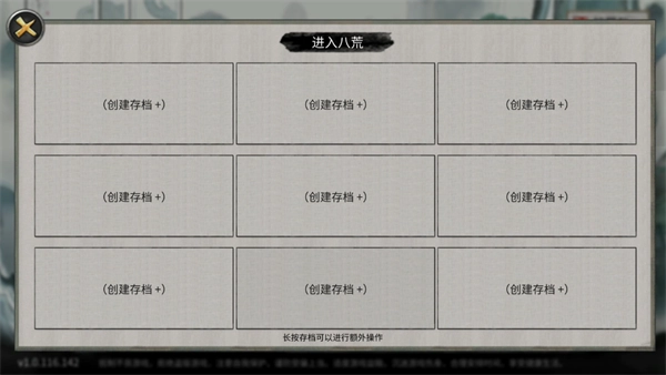 2、当你点击屏幕,就能查看自身的存档。若是新手玩家,尚无存档,此时可点击任意空白存档来开启新游戏。