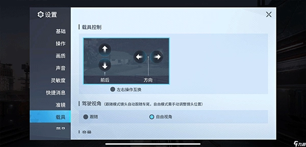 2、要是玩家想调整载具操控方式,可去到设置界面,寻找载具相关选项。此设置和枪械操作设定共用一个入口,需要从操作栏进入射击模式自定义配置页面,接着在左上角找到并点击“载具设置”按钮。