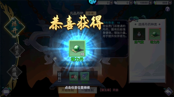 6、倘若遭遇实力强大的 BOSS 而难以战胜,不妨移步至炼丹房炼制丹药,借此提升自身境界。
