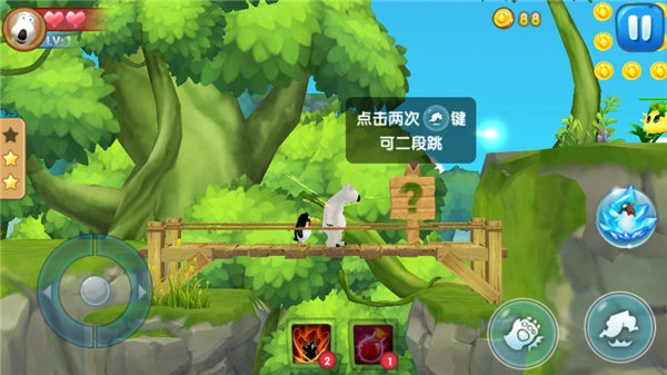 二段跳:遇到较高的障碍时,只需连续点击两次跳跃键,就能实现二段跳。